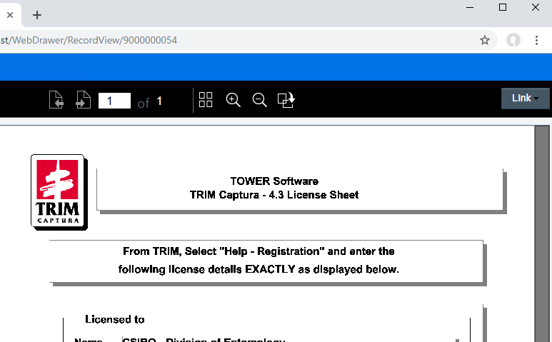 It might be the case that some CM users have permission to view a Record metadata but not the electronic document. In this case they will get a message like the one below when they open a document link.